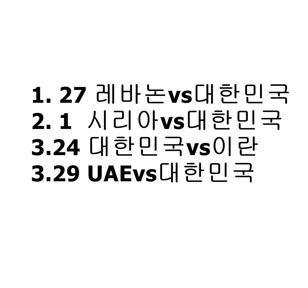 2022년 1월 레바논(27일) 2월 시리아(1일)를 만나며 3월에는 연이어 이란과 UAE를 만나며 최종예선을 마무리 짓게 된다. 매 상대마다 서아시아 원정을 떠나게 됨으로 인해서 체력적 부담을 짊고 있어서 험난한 난관이 예상이 된다. 특히 손흥민은 런던과 아시아와 서아시아를 이동하는 정말 말이 안되는 이동거리를 소화하고 있고 결국 체력적 부담으로 인해 현재 부상이 당한 셈이다.
